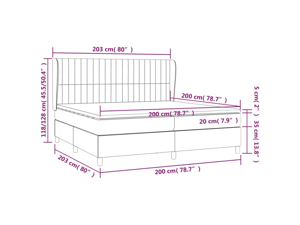 - Rozmery: 203 x 203 x 118/128 cm (D x Š x V)