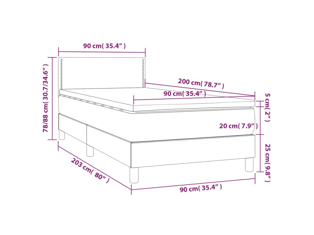 - Rozmery: 90 x 200 x 20 cm (D x Š x V)