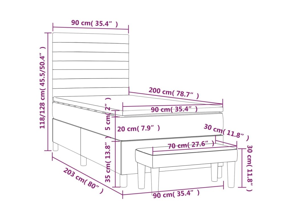 - Rozmery: 203 x 90 x 118/128 cm (D x Š x V)