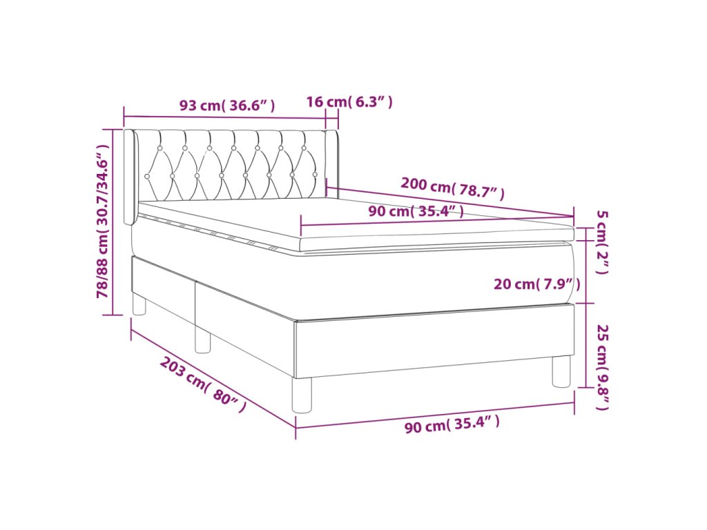 - Rozmery: 90 x 200 x 20 cm (D x Š x V)