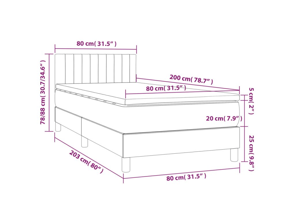 - Rozmery: 80 x 200 x 20 cm (D x Š x V)