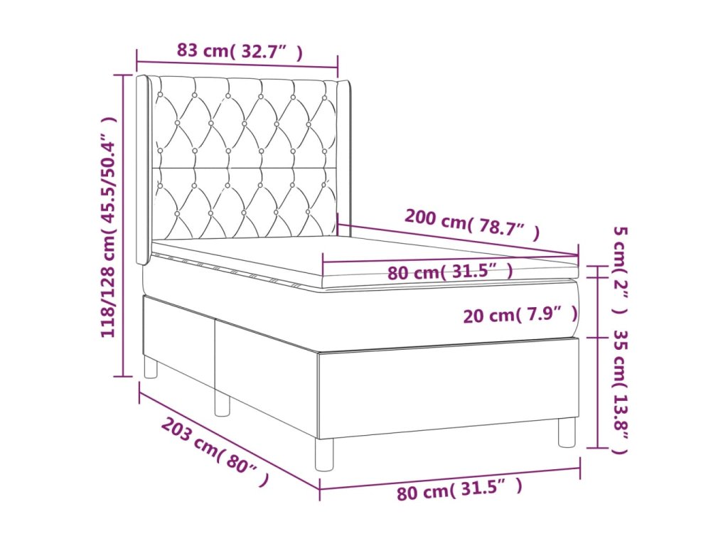 - Rozmery: 203 x 83 x 118/128 cm (D x Š x V)