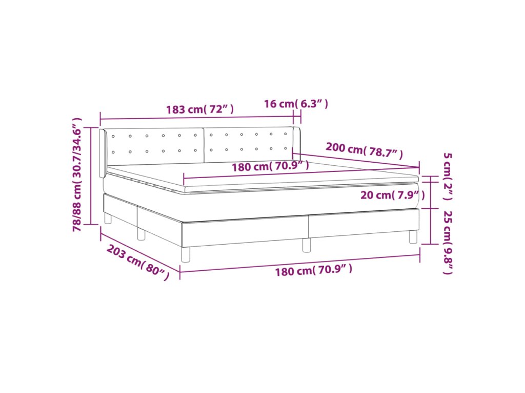 - Rozmery: 180 x 200 x 20 cm (Š x D x V)