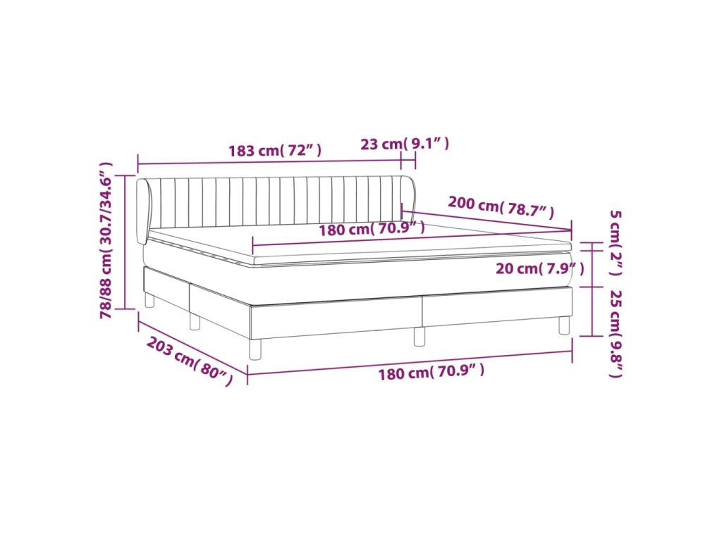 - Rozmery: 203 x 183 x 78/88 cm (D x Š x V)