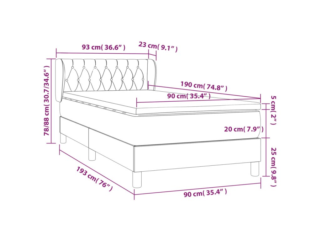 - Rozmery: 90 x 190 x 20 cm (Š x D x V)