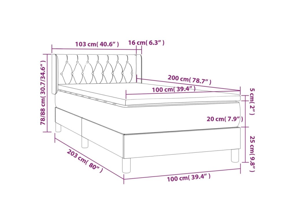 - Rozmery: 203 x 103 x 78/88 cm (D x Š x V)