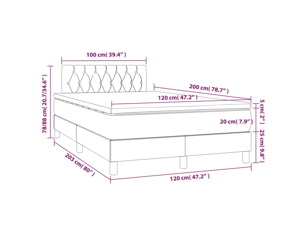 - Rozmery: 120 x 200 x 20 cm (Š x D x V)