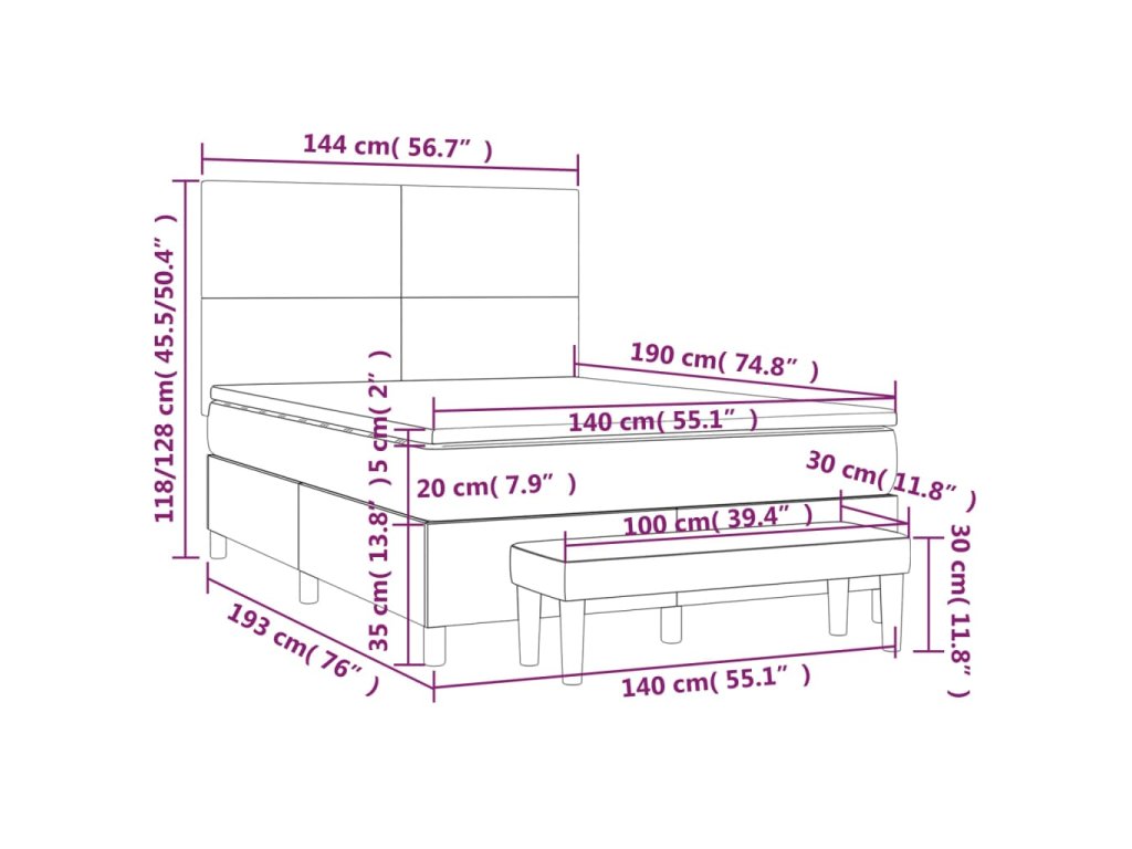 - Rozmery: 140 x 190 x 20 cm (D x Š x V)