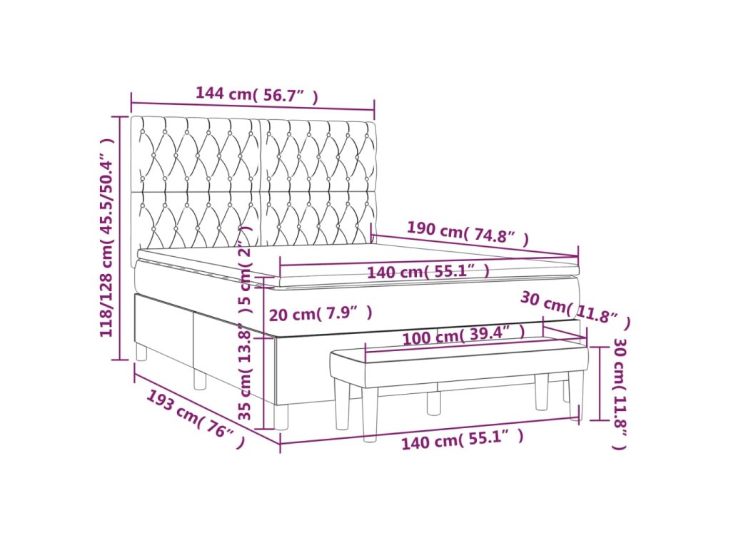 - Rozmery: 140 x 190 x 20 cm (D x Š x V)