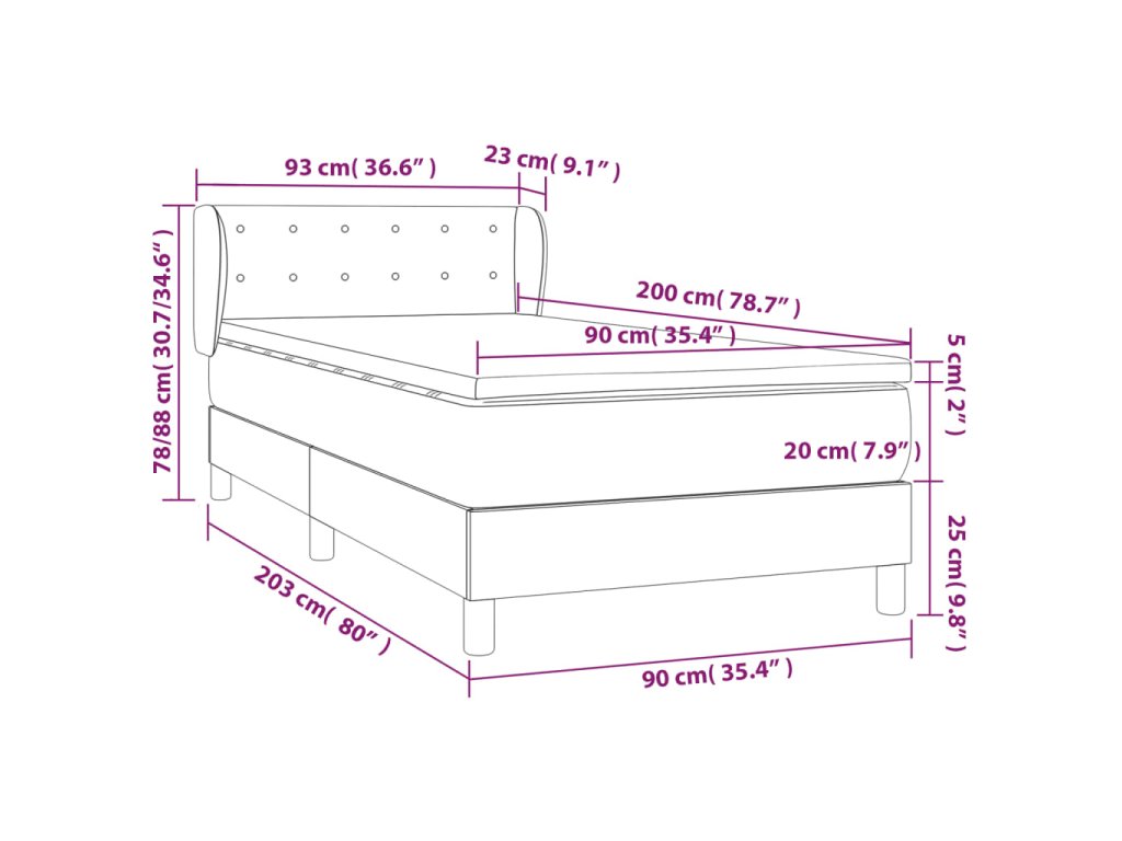 - Rozmery: 90 x 200 x 20 cm (D x Š x V)