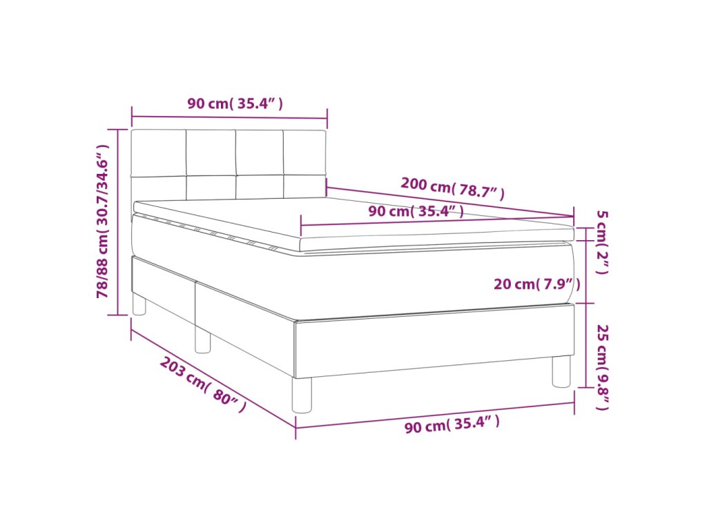 - Rozmery: 90 x 200 x 20 cm (D x Š x V)