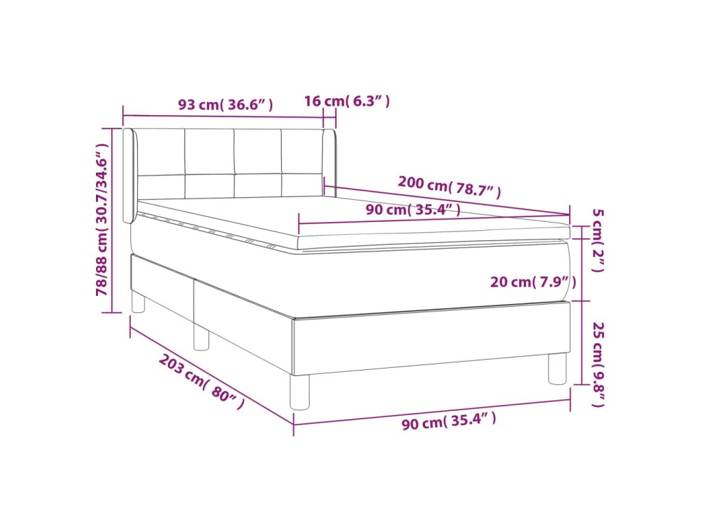 - Rozmery: 90 x 200 x 20 cm (D x Š x V)