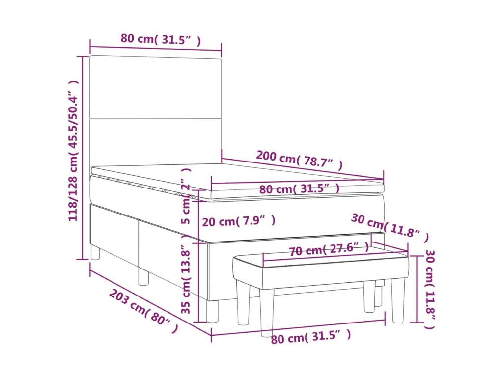- Rozmery: 203 x 80 x 118/128 cm (D x Š x V)