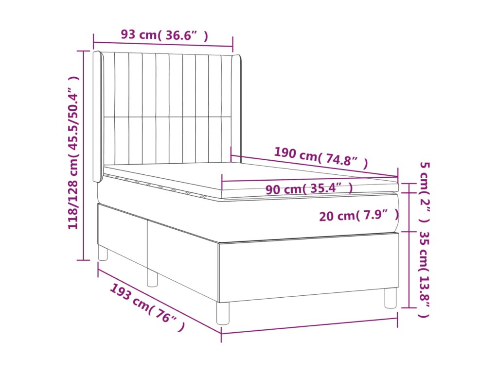 - Rozmery: 193 x 93 x 118/128 cm(D x Š x V)