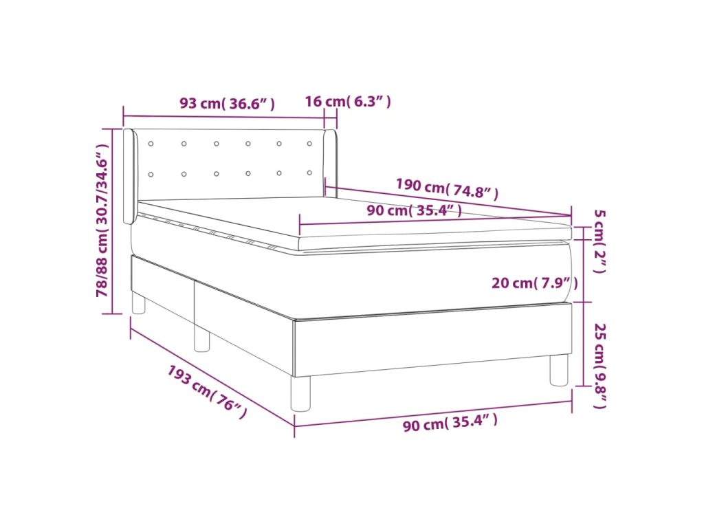 - Rozmery: 193 x 93 x 78/88 cm (D x Š x V)