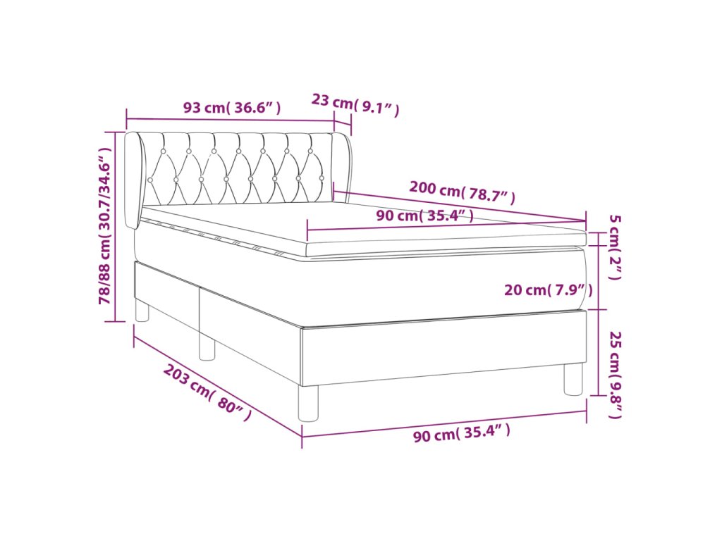 - Rozmery: 90 x 200 x 20 cm (D x Š x V)