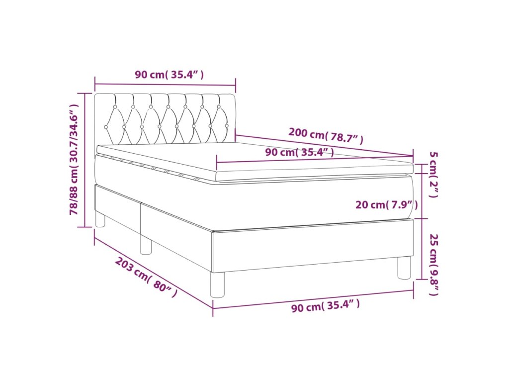 - Rozmery: 90 x 200 x 20 cm (D x Š x V)