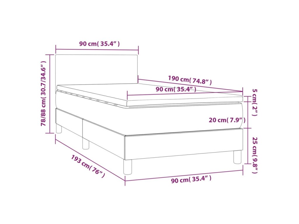 - Rozmery: 90 x 190 x 20 cm (Š x D x V)