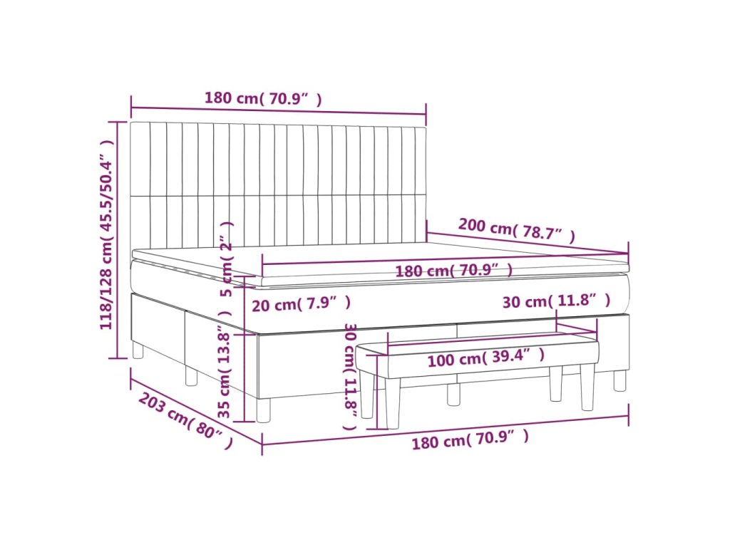 - Rozmery: 203 x 180 x 118/128 cm (D x Š x V)