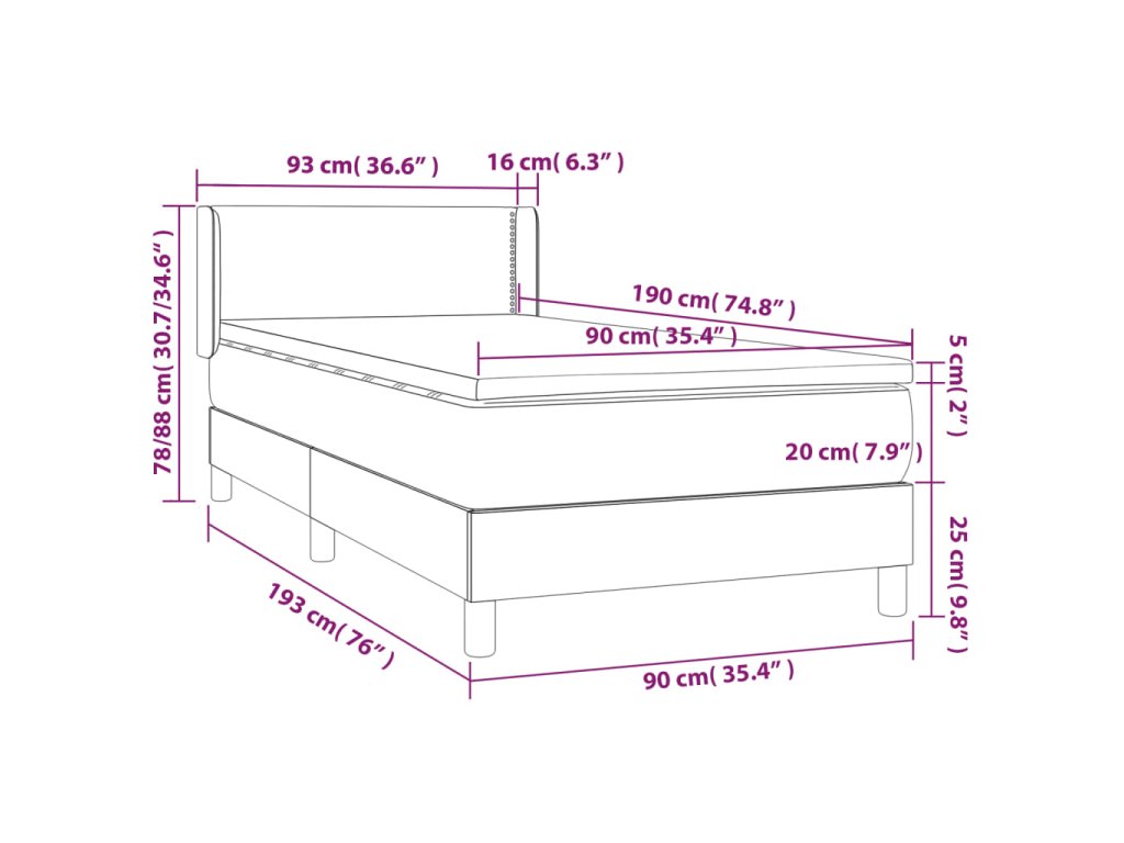 - Rozmery: 90 x 190 x 20 cm (Š x D x V)