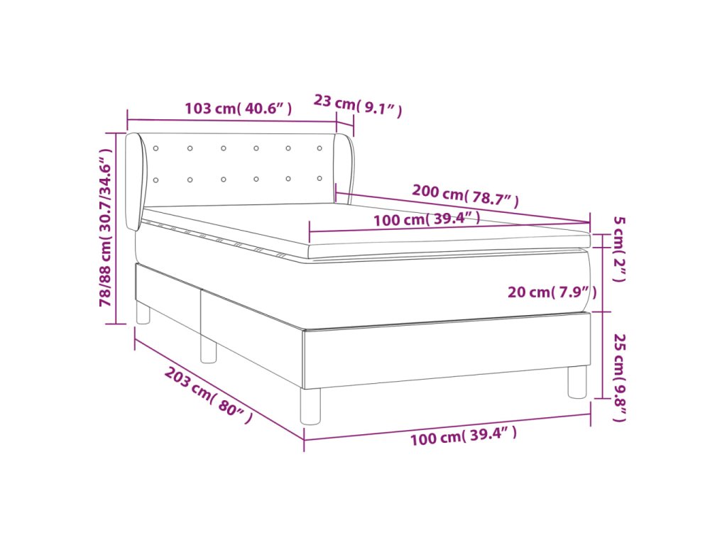 - Rozmery: 203 x 103 x 78/88 cm (D x Š x V)