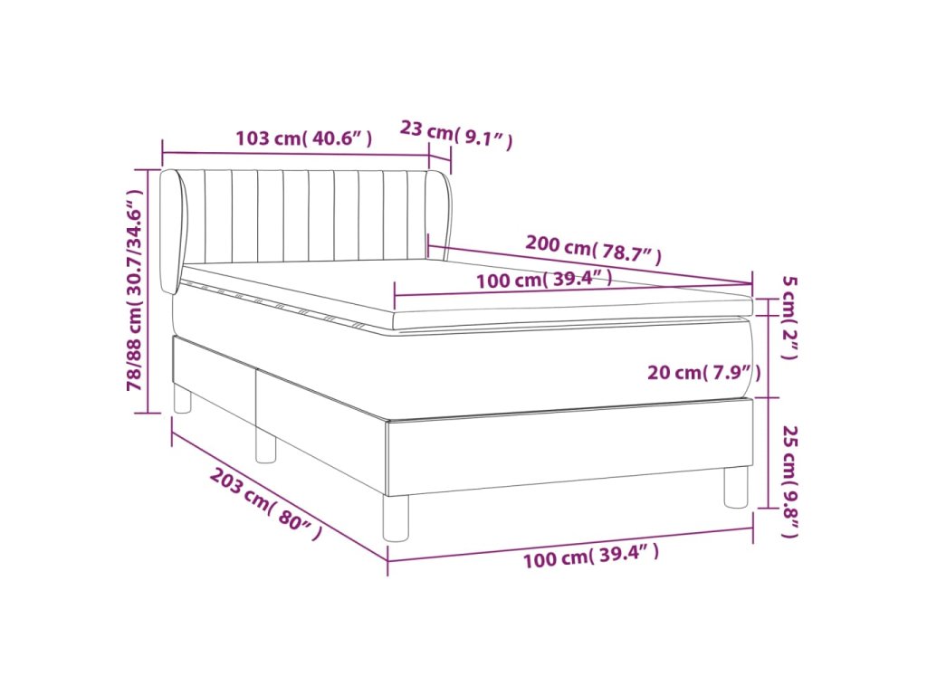 - Rozmery: 203 x 103 x 78/88 cm (D x Š x V)