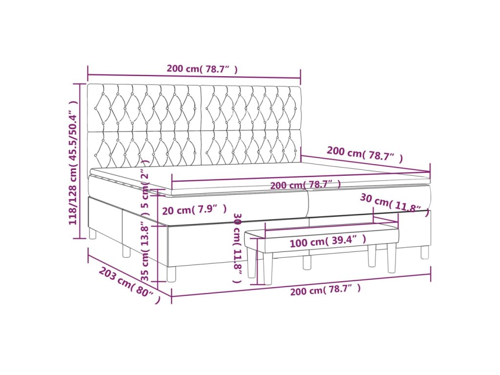 - Rozmery: 203 x 200 x 118/128 cm (D x Š x V)