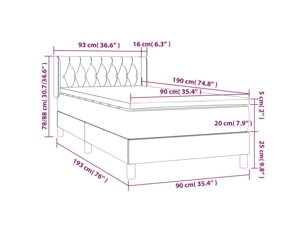 - Rozmery: 90 x 190 x 20 cm (Š x D x V)