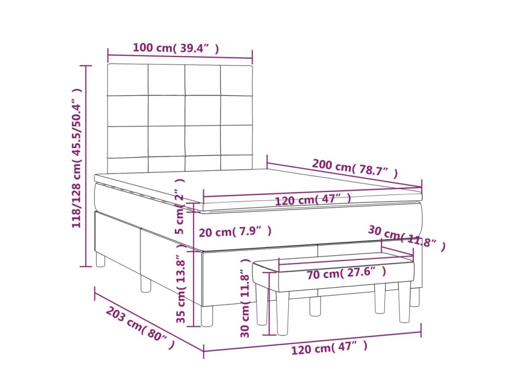 - Rozmery: 203 x 120 x 118/128 cm (D x Š x V)