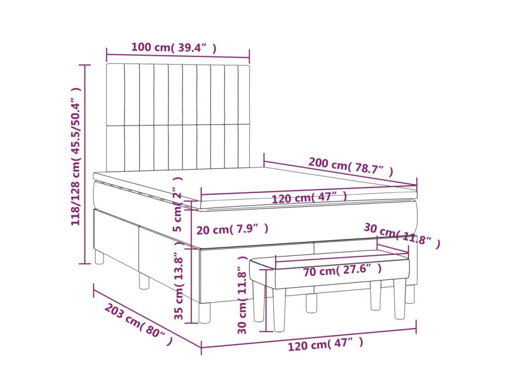 - Rozmery: 203 x 120 x 118/128 cm (D x Š x V)