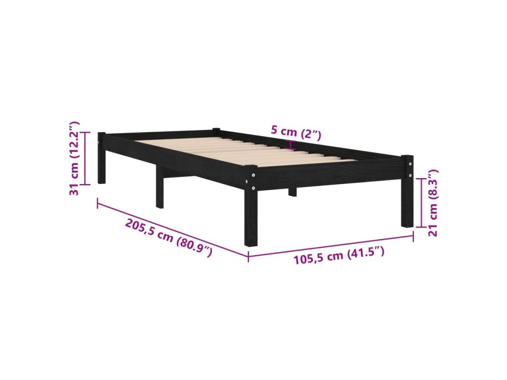 Základňa postele je vyrobená z masívneho borovicového dreva a je mimoriadne pevná a odolná. Tento rám postele je vhodný pre matrac s rozmermi 100 × 200 cm. Na tejto posteli si môžete vychutnať skvelý zážitok zo spánku každú noc!