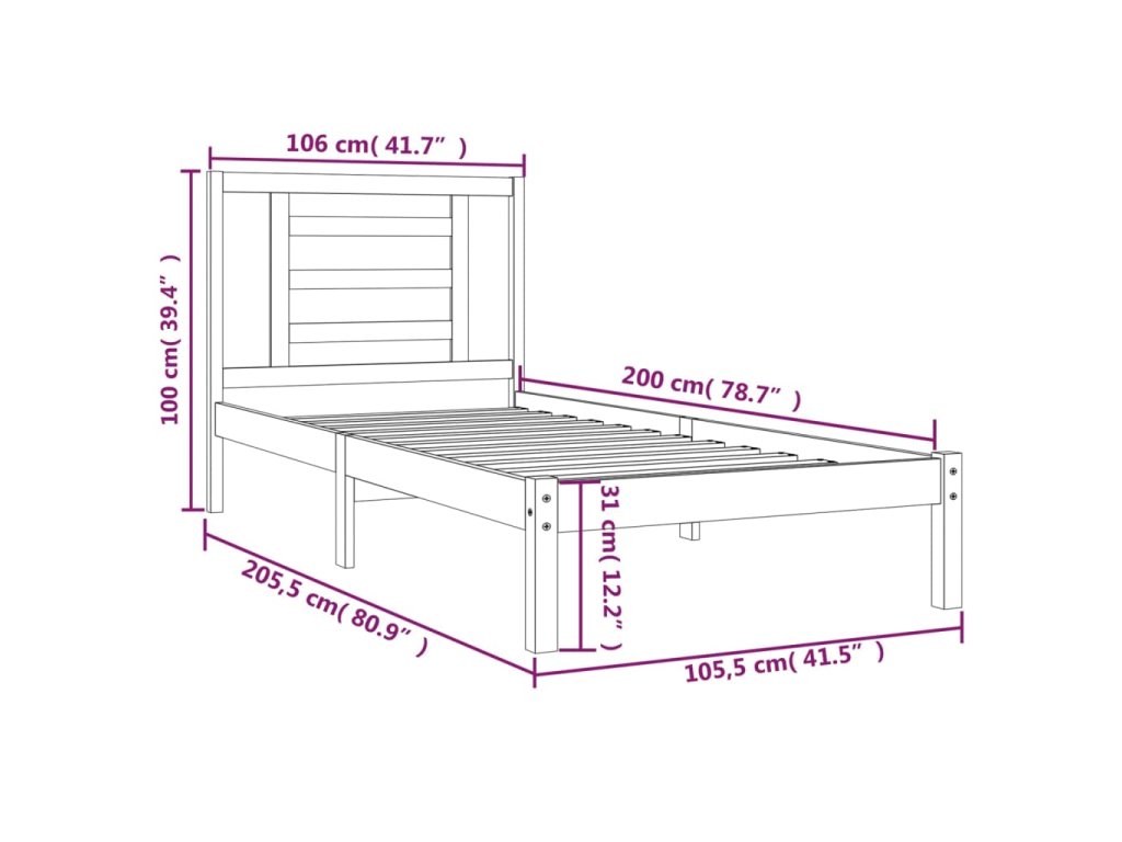 - Rozmery rámu postele: 205,5 x 105,5 x 31 cm (D x Š x V)