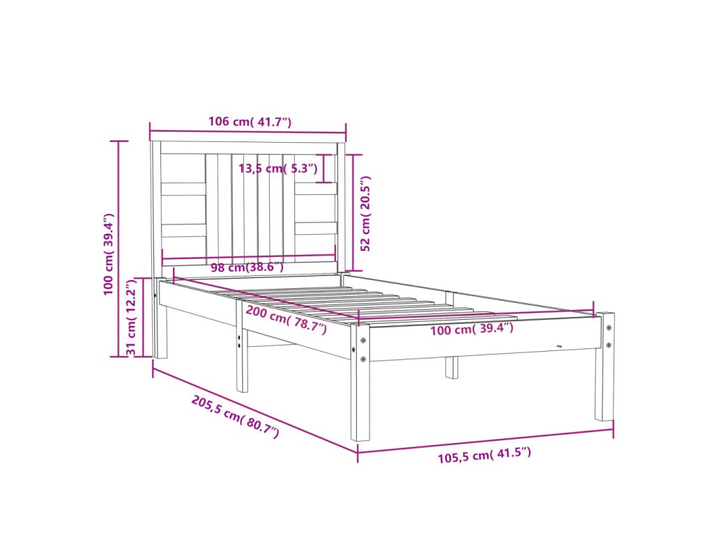 - Rozmery rámu postele: 205,5 x 105,5 x 31 cm (D x Š x V)