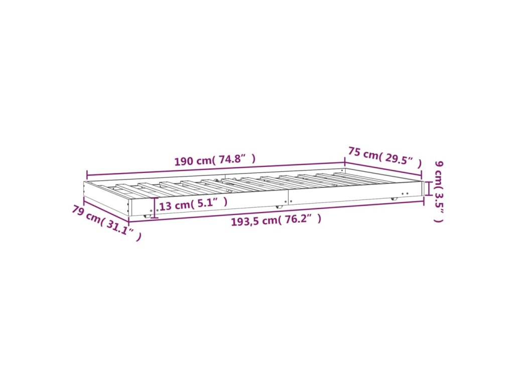 - Tento rám postele je vhodný pre matrac s rozmermi 75 x 190 cm.