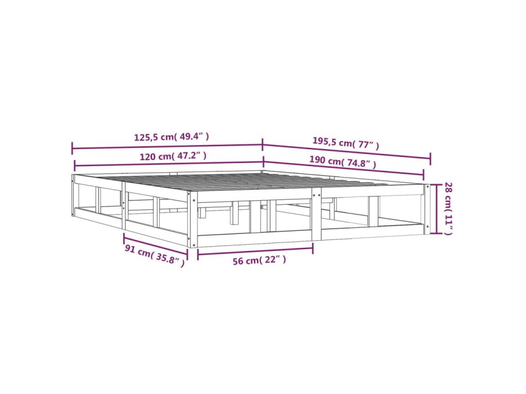 - Tento rám postele je vhodný pre matrac s rozmermi 120 x 190 cm (4FT malé dvojlôžko).