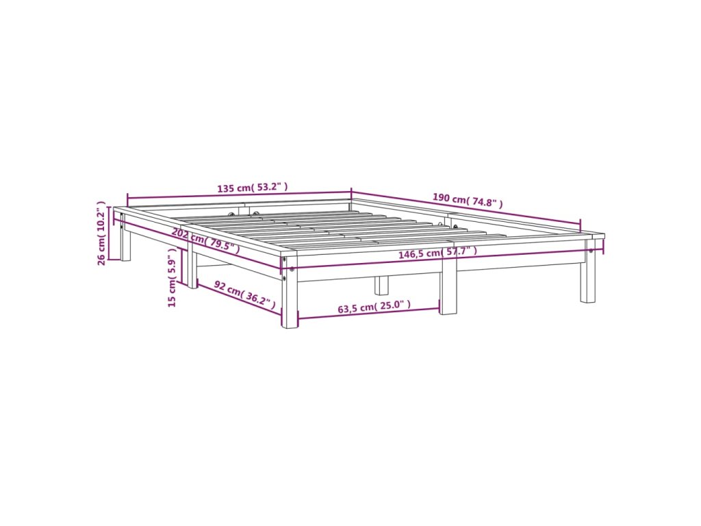 - Tento rám postele je vhodný pre matrac s rozmermi 135 x 190 cm (4FT6 dvojlôžko).