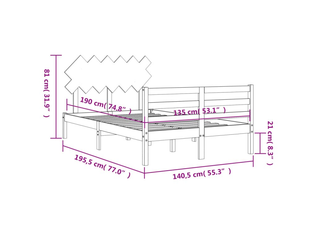 - Celkové rozmery postele: 195,5 x 140,5 x 81 cm (d x š x v)