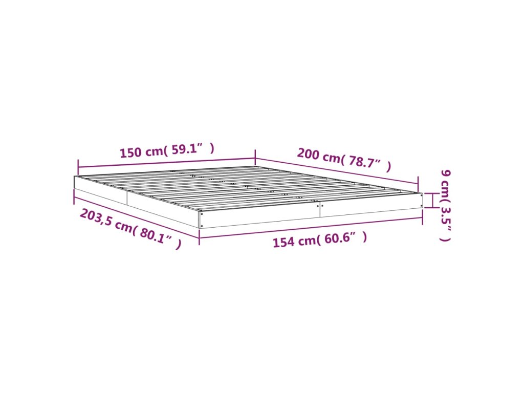 - Tento rám postele je vhodný pre matrac s rozmermi 150 x 200 cm (kráľovská veľkosť).