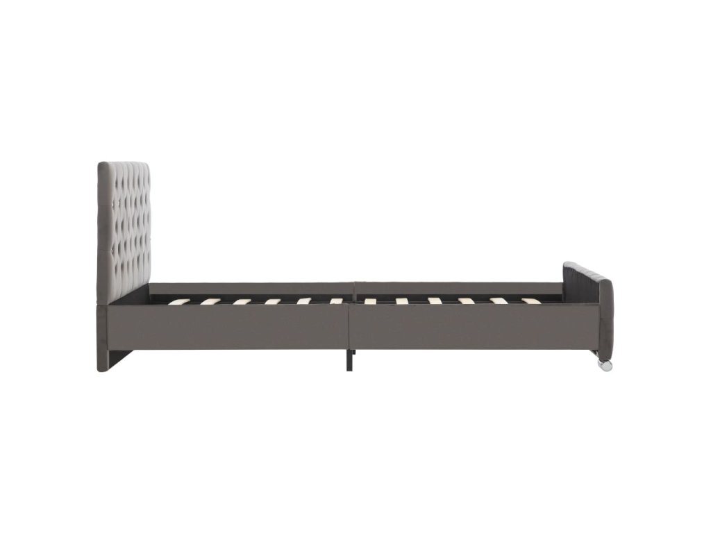 Posteľný rám sa vyznačuje nenápadným, úhľadným dizajnom a do vašej spálne vnesie nádych elegancie. Posteľný rám je vyrobený z dreva a ocele, a preto je mimoriadne pevný a trvácny. Kovové nohy posteli dodávajú potrebnú odolnosť. Posteľ je okrem toho potiahnutá príjemnou a trvácnou látkou, ktorá sa ľahko čistí. Vhodné rozmery matraca na túto posteľ sú 120 x 200 cm.