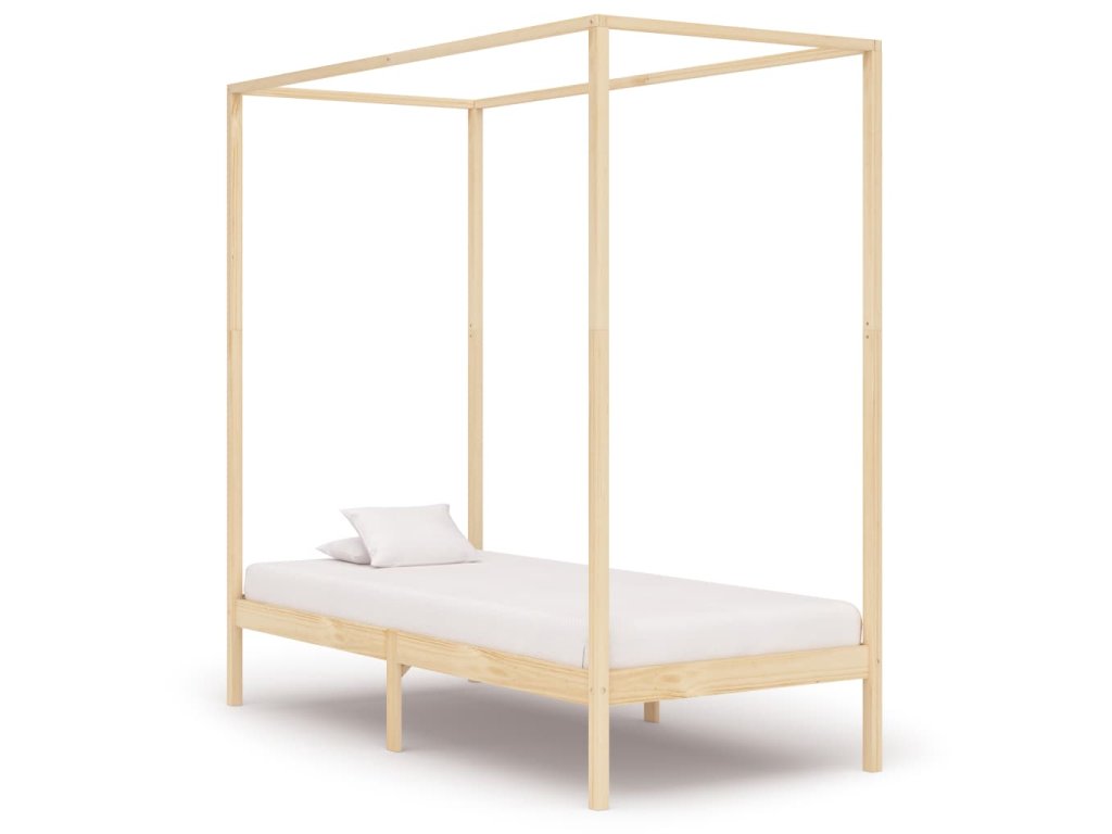 Posteľ je elegantne navrhnutá s horným rámom na zavesenie vašich obľúbených závesov, čo do vašej spálne dodáva jedinečné kúzlo a zároveň vytvára súkromie. Rám postele je vyrobený z masívneho borovicového dreva a je mimoriadne odolný a trvácny. Pevné lamely poskytujú potrebnú oporu a sú veľmi pohodlné. Tento rám postele je vhodný pre matrac 90 x 200 cm.