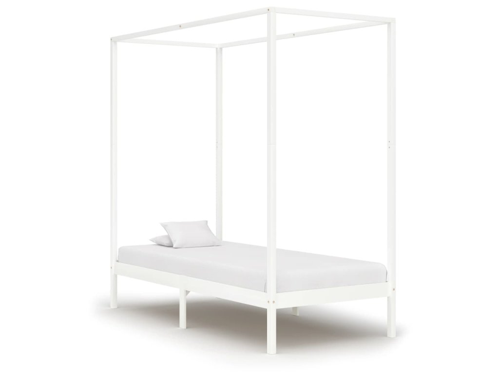 Posteľ je elegantne navrhnutá s horným rámom na zavesenie vašich obľúbených závesov, čo do vašej spálne dodáva jedinečné kúzlo a zároveň vytvára súkromie. Rám postele je vyrobený z masívneho borovicového dreva a je mimoriadne odolný a trvácny. Pevné lamely poskytujú potrebnú oporu a sú veľmi pohodlné. Tento rám postele je vhodný pre matrac 100 x 200 cm.