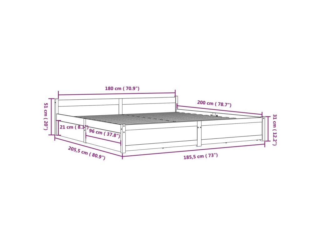 - Tento rám postele je vhodný pre matrac s rozmermi 180 x 200 cm (super kráľovská veľkosť).