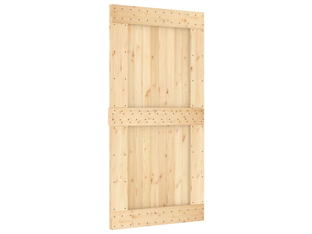 - Masívne borovicové drevo: Dvere sú vyrobené z masívneho borovicového dreva. Masívne borovicové drevo je krásny prírodný materiál. Borovicové drevo má rovnú štruktúru a uzly dodávajú materiálu jeho typický rustikálny vzhľad.