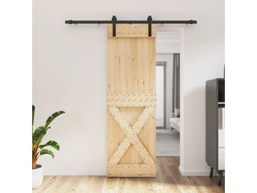 - Masívne borovicové drevo: Dvere sú vyrobené z masívneho borovicového dreva. Masívne borovicové drevo je krásny prírodný materiál. Borovicové drevo má rovnú štruktúru a uzly dodávajú materiálu jeho typický rustikálny vzhľad.