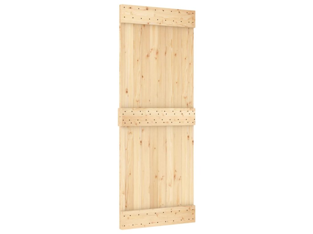- Masívne borovicové drevo: Dvere sú vyrobené z masívneho borovicového dreva. Masívne borovicové drevo je krásny prírodný materiál. Borovicové drevo má rovnú štruktúru a uzly dodávajú materiálu jeho typický rustikálny vzhľad.