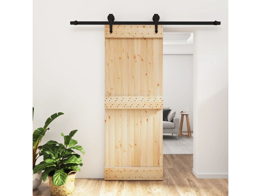 - Masívne borovicové drevo: Dvere sú vyrobené z masívneho borovicového dreva. Masívne borovicové drevo je krásny prírodný materiál. Borovicové drevo má rovnú štruktúru a uzly dodávajú materiálu jeho typický rustikálny vzhľad.