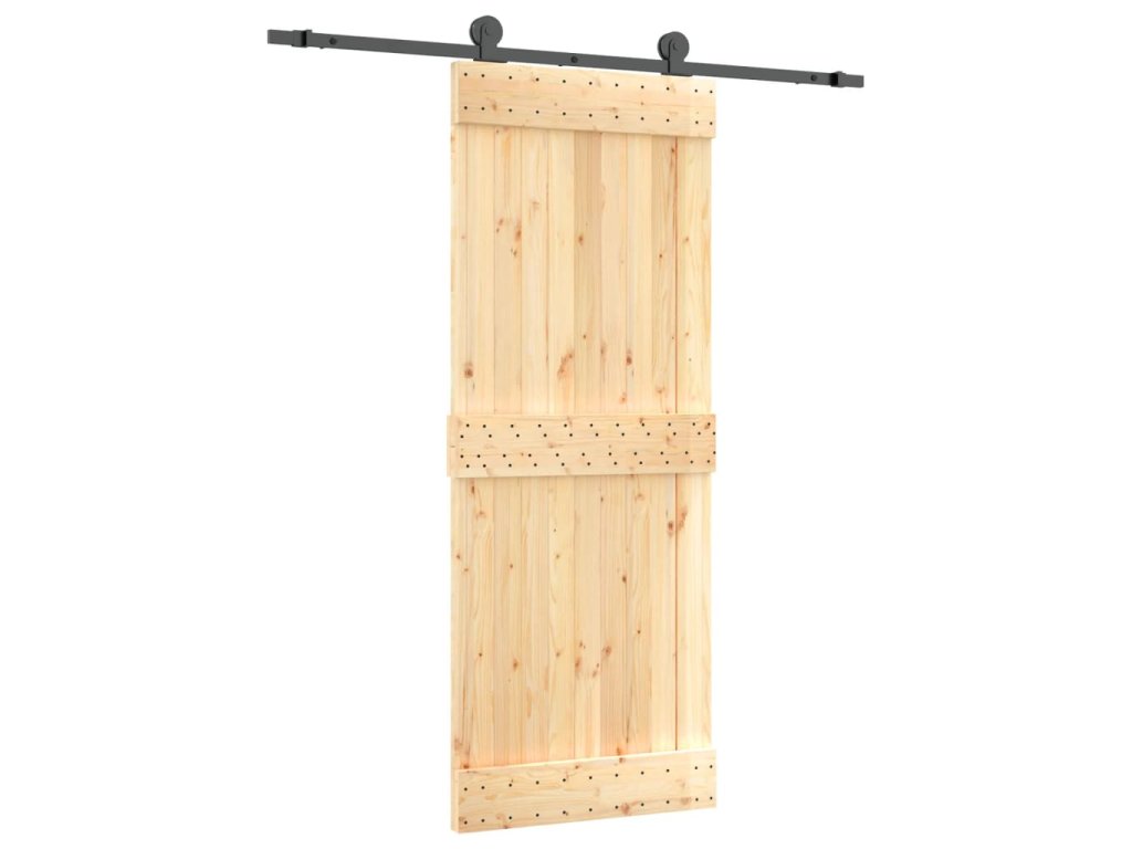 - Masívne borovicové drevo: Dvere sú vyrobené z masívneho borovicového dreva. Masívne borovicové drevo je krásny prírodný materiál. Borovicové drevo má rovnú štruktúru a uzly dodávajú materiálu jeho typický rustikálny vzhľad.