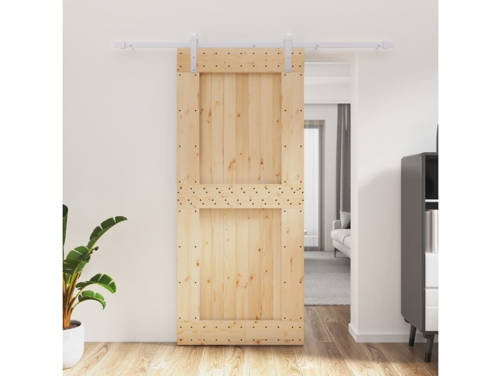 - Masívne borovicové drevo: Dvere sú vyrobené z masívneho borovicového dreva. Masívne borovicové drevo je krásny prírodný materiál. Borovicové drevo má rovnú štruktúru a uzly dodávajú materiálu jeho typický rustikálny vzhľad.