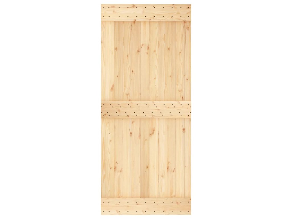 - Masívne borovicové drevo: Dvere sú vyrobené z masívneho borovicového dreva. Masívne borovicové drevo je krásny prírodný materiál. Borovicové drevo má rovnú štruktúru a uzly dodávajú materiálu jeho typický rustikálny vzhľad.