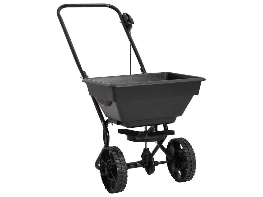 Robustný posypový vozík má rám z oceľových trúbok, ktorý je trvácny a odolný voči korózii. Obsahuje aj veľkú násypku z PVC na prepravu soli, semien alebo hnojiva. Záhradné rozmetadlo je navrhnuté tak, aby pri posýpaní presne trafilo rovnováhu medzi príliš veľkým a príliš malým množstvom trávneho osiva. Osivo tak nebude rozosiate ani príliš nahusto, ani príliš nariedko, aby mohla tráva pekne rásť. Zároveň vám pomôže rovnomerne rozptýliť hnojivo na trávnik, aby sa znížilo riziko spálenia trávy. Rozmetadlo na trávnik sa dodáva s regulátorom, ktorý sa nachádza vedľa rukoväte a ovláda sa pomocou kábla a umožní vám jednoducho nastaviť rýchlosť posypu pre lepšiu efektivitu. Dizajn s dvoma kolesami a dlhou rukoväťou zabezpečí, že sa vám s týmto nástrojom bude v záhrade narábať naozaj jednoducho.